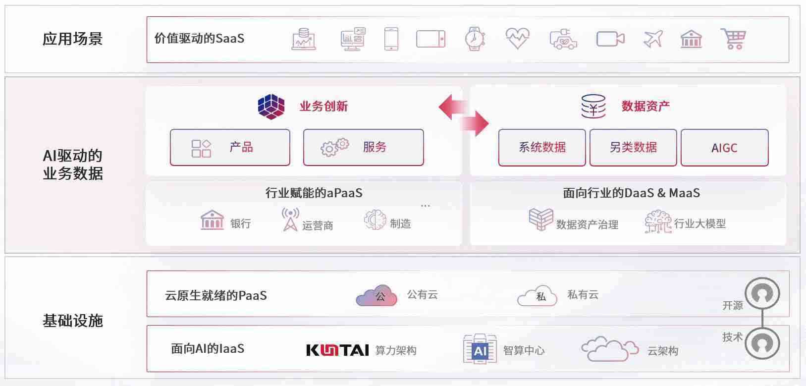 数字时代,,,围绕企业数字化转型的关键要素,,365钱包数码开创性的提出数云融合战略和技术体系框架,,,,着力在云原生、、数字原生、、、AI原生和信创产业上架构产品和服务能力,,,为处在不同数字化转型阶段的快消零售、、、汽车、、、、金融、、、医疗、、、政企、、教育、、运营商等行业客户提供泛在的敏捷IT能力和融合的数据驱动能力,,,,构建跨界融合创新的数字业务场景和新业务模式,,助力企业级客户建立面向未来的核心能力和竞争优势,,全面推动社会的数字化、、、、智能化转型升级。。。